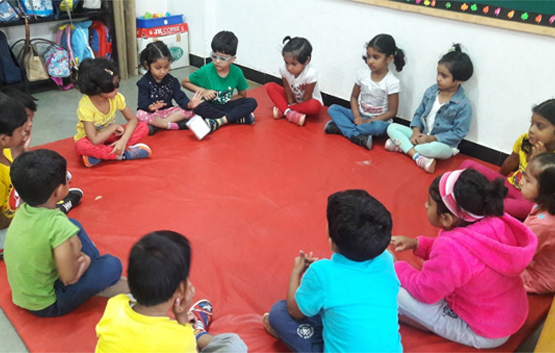 Story time is particularly important for this age group. The child’s imagination and the increased ability to remember the past make the child an interesting storyteller. Teachers give students opportunities to recite familiar stories that they have read. Children learn that reading is about playing with words and sounds through rhymes, songs and stories.